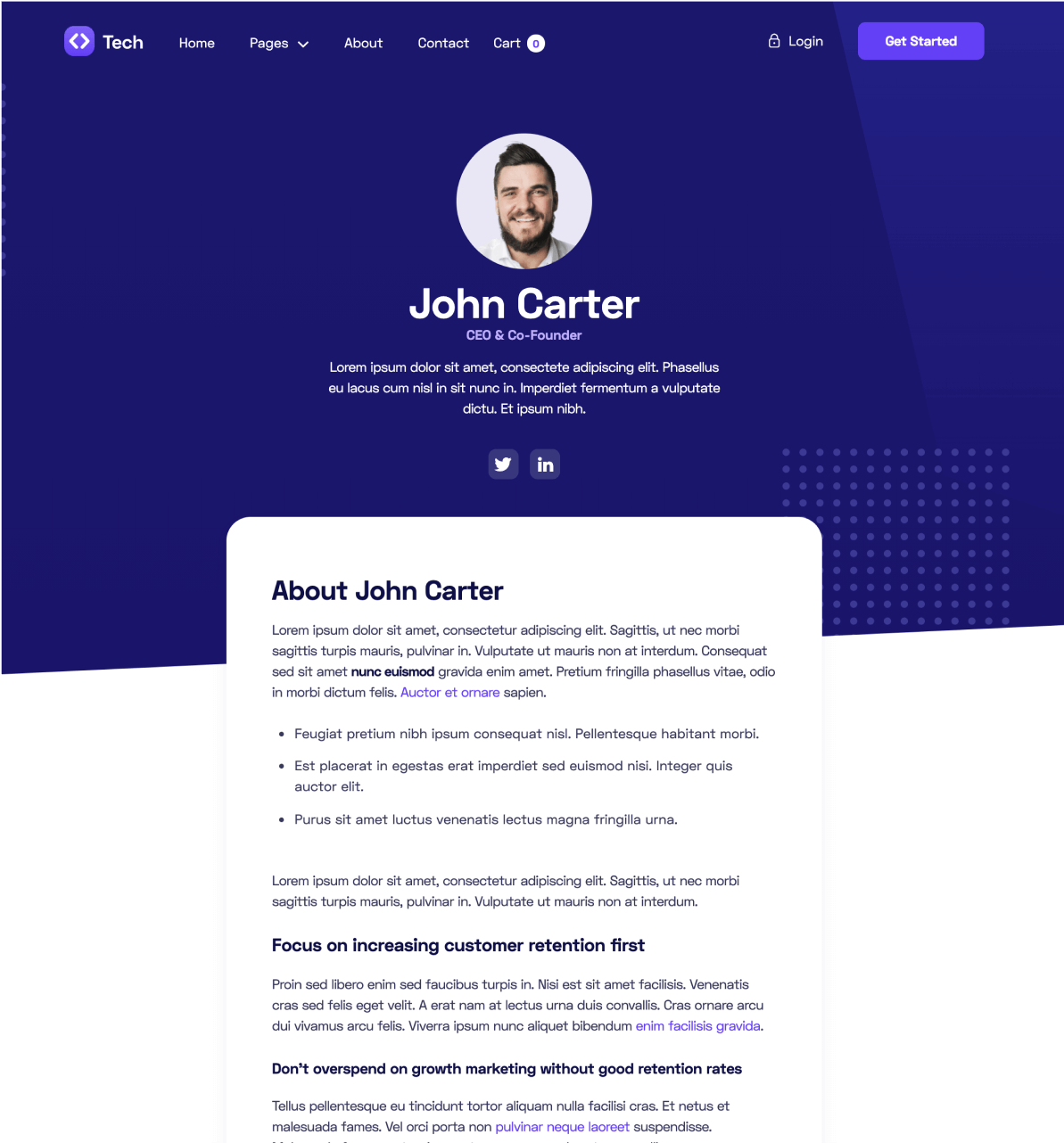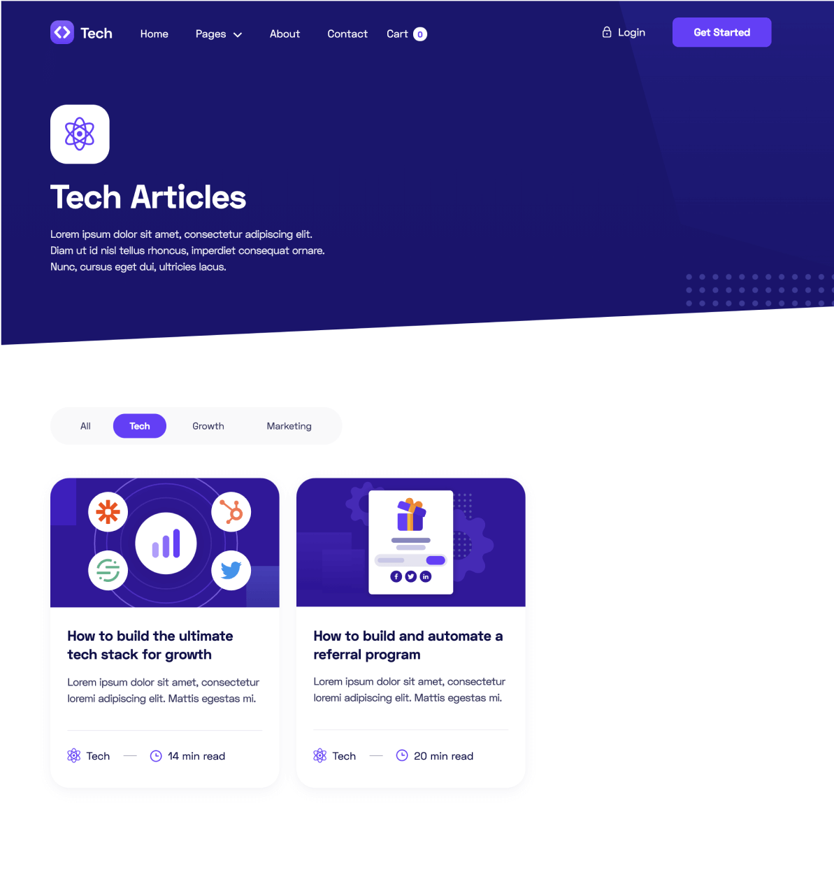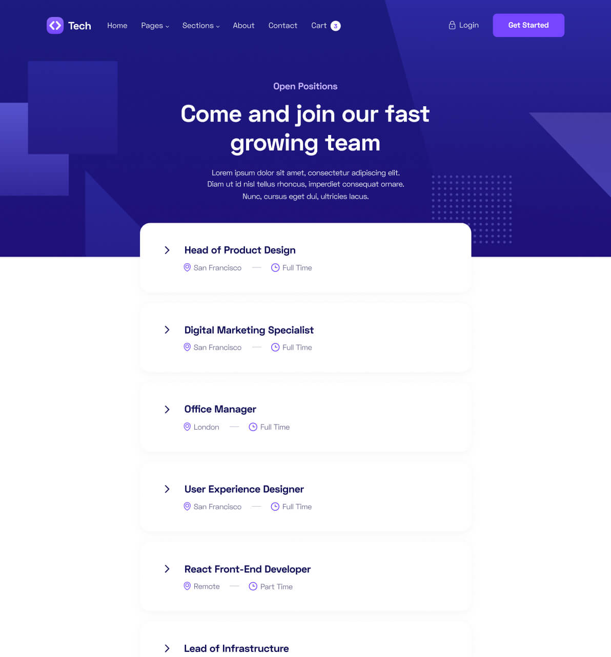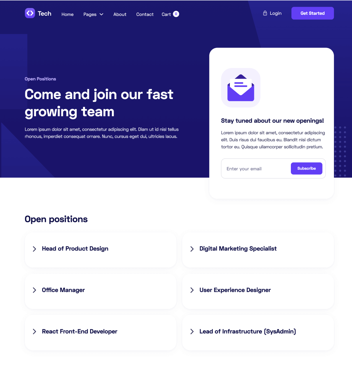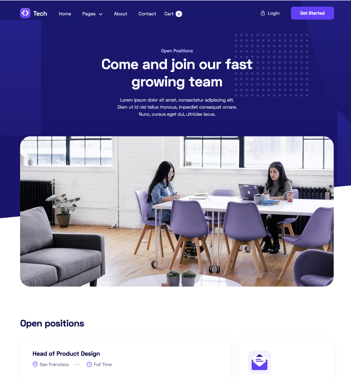 Tech Webflow Template and UI Kit has over 20 main pages, including 3 different home, careers and blog options.