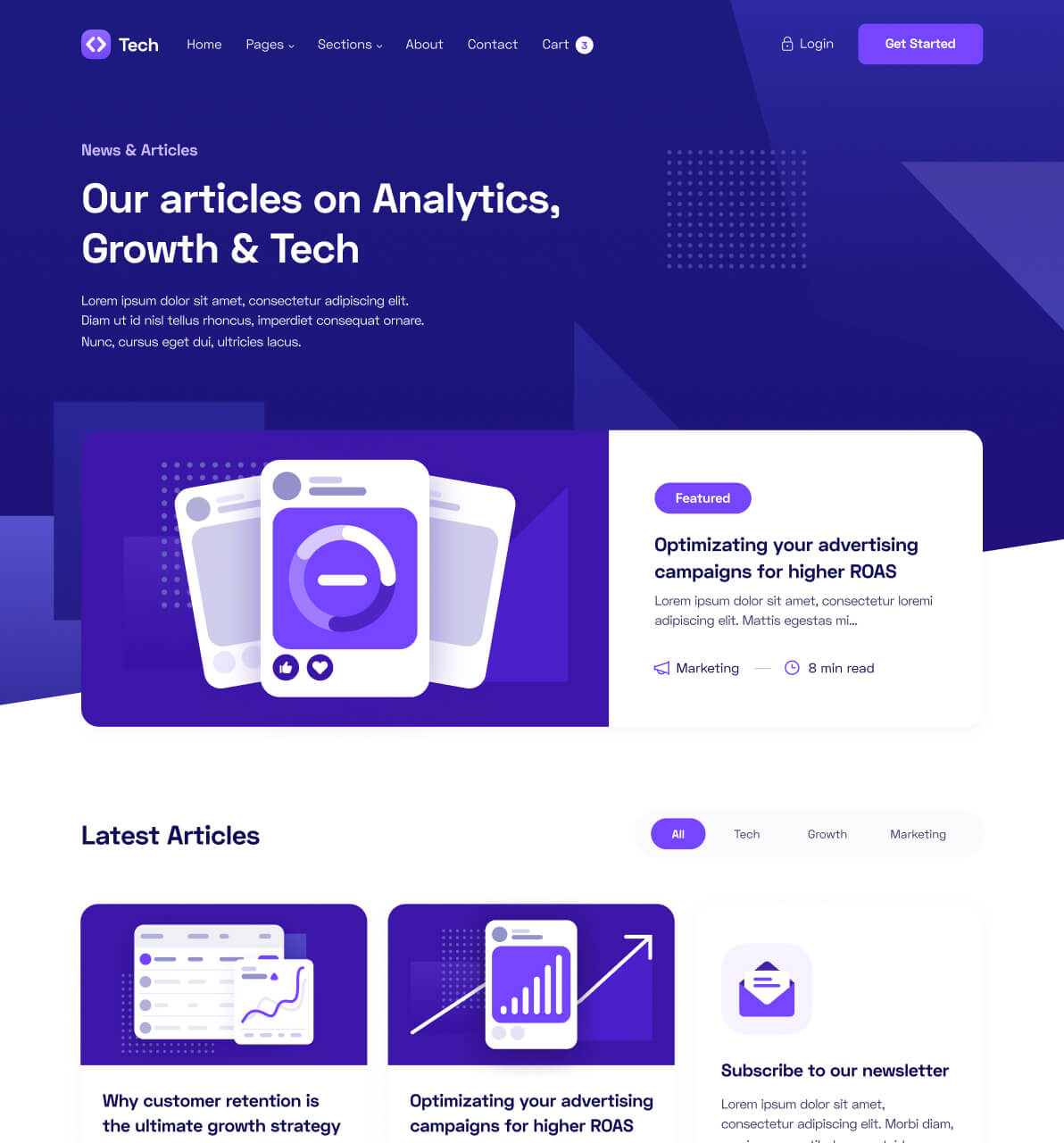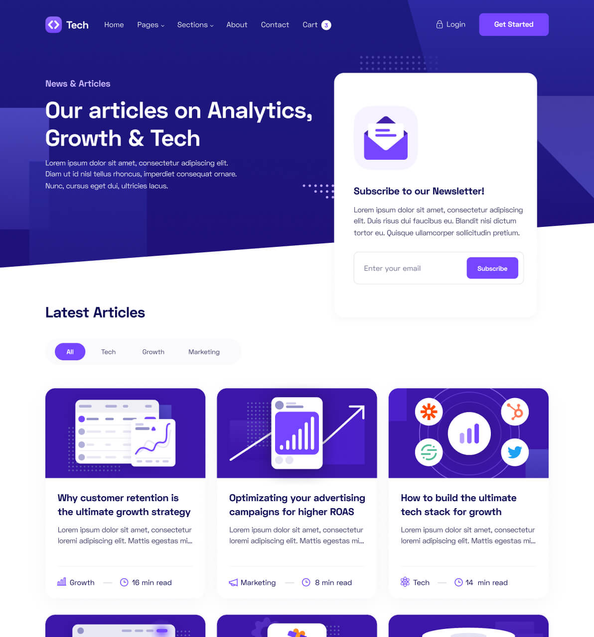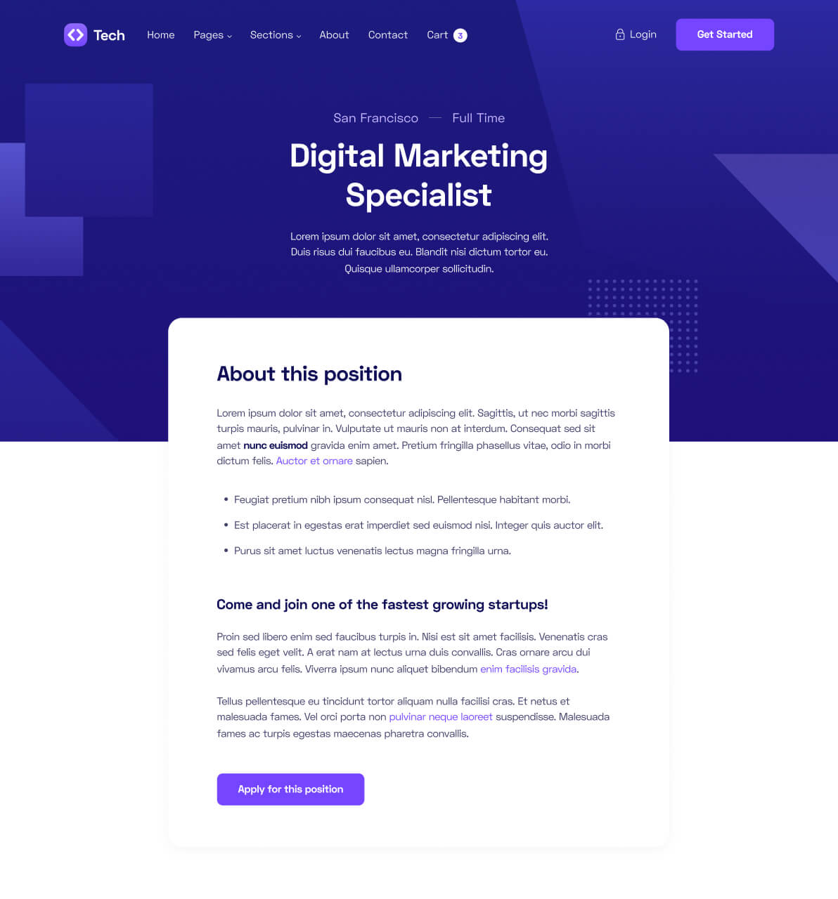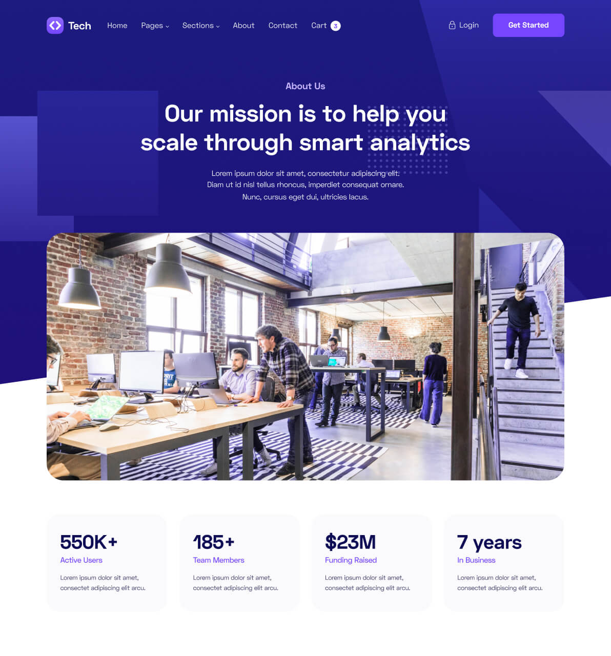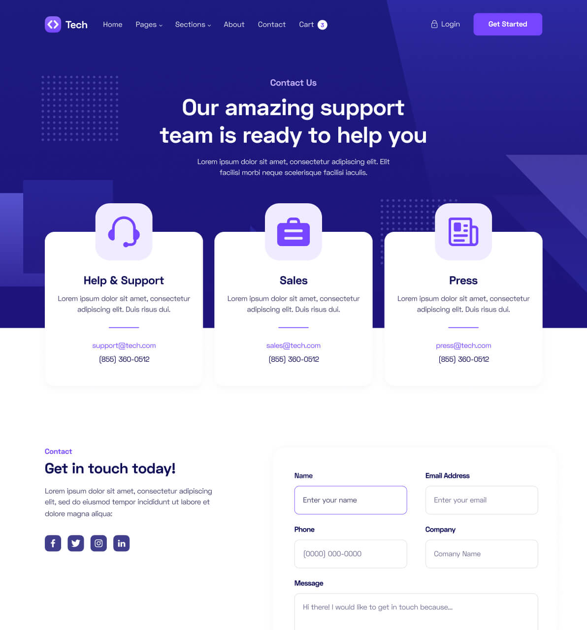 Tech Webflow Template and UI Kit has over 20 main pages, including 3 different home, careers and blog options.